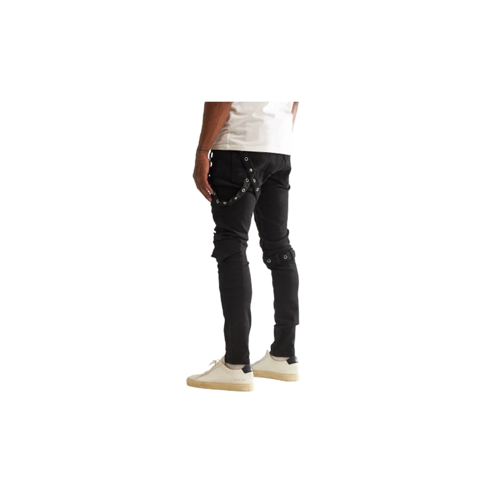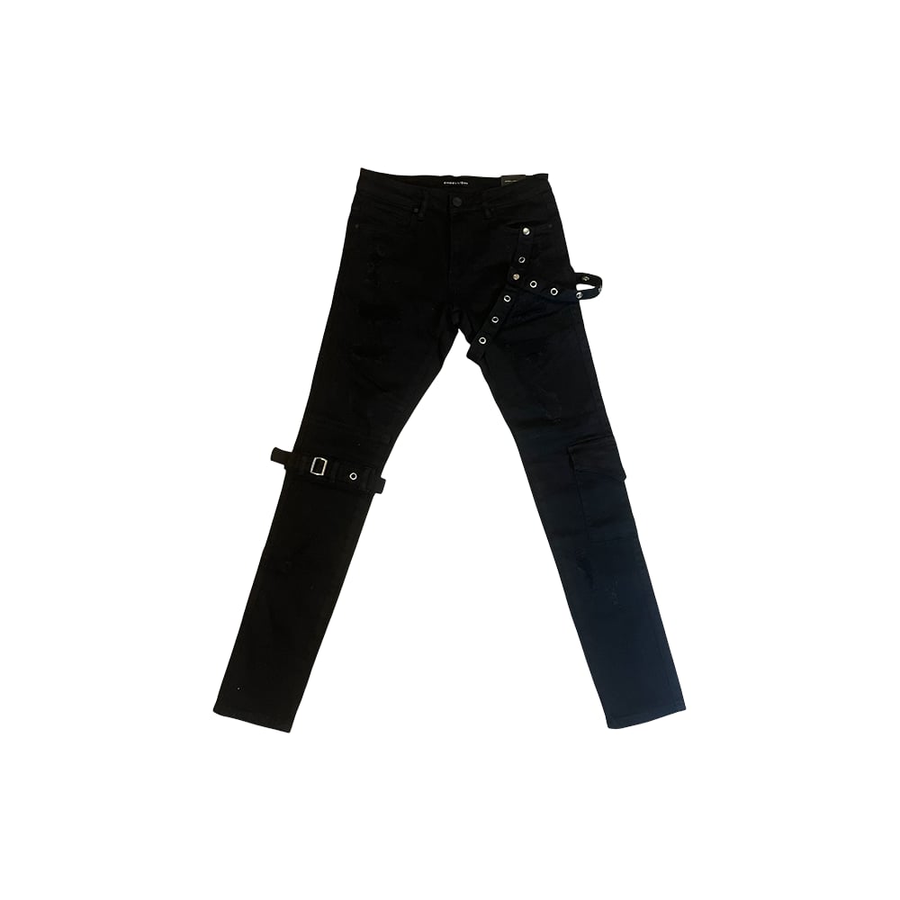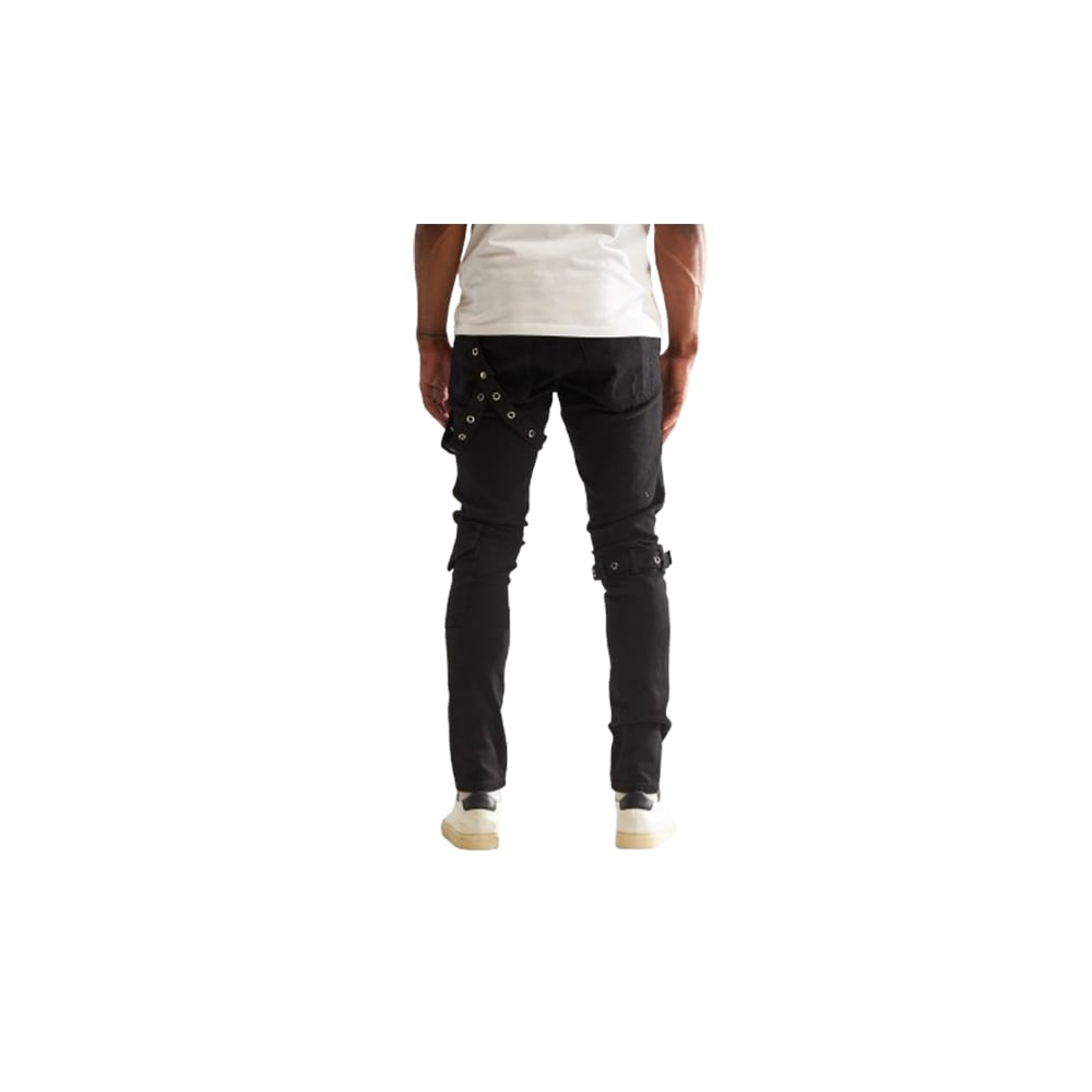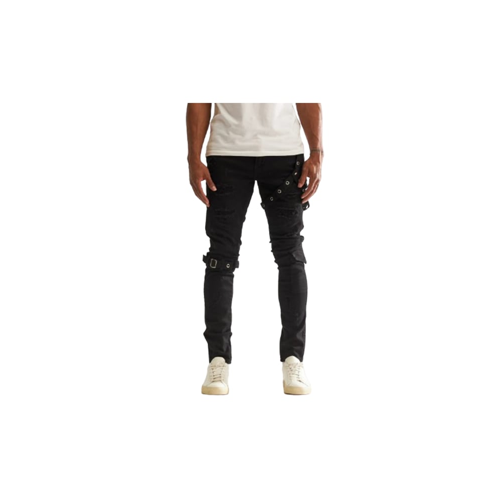 Embellish Black Rip & Repair Buckle Strap Jeans